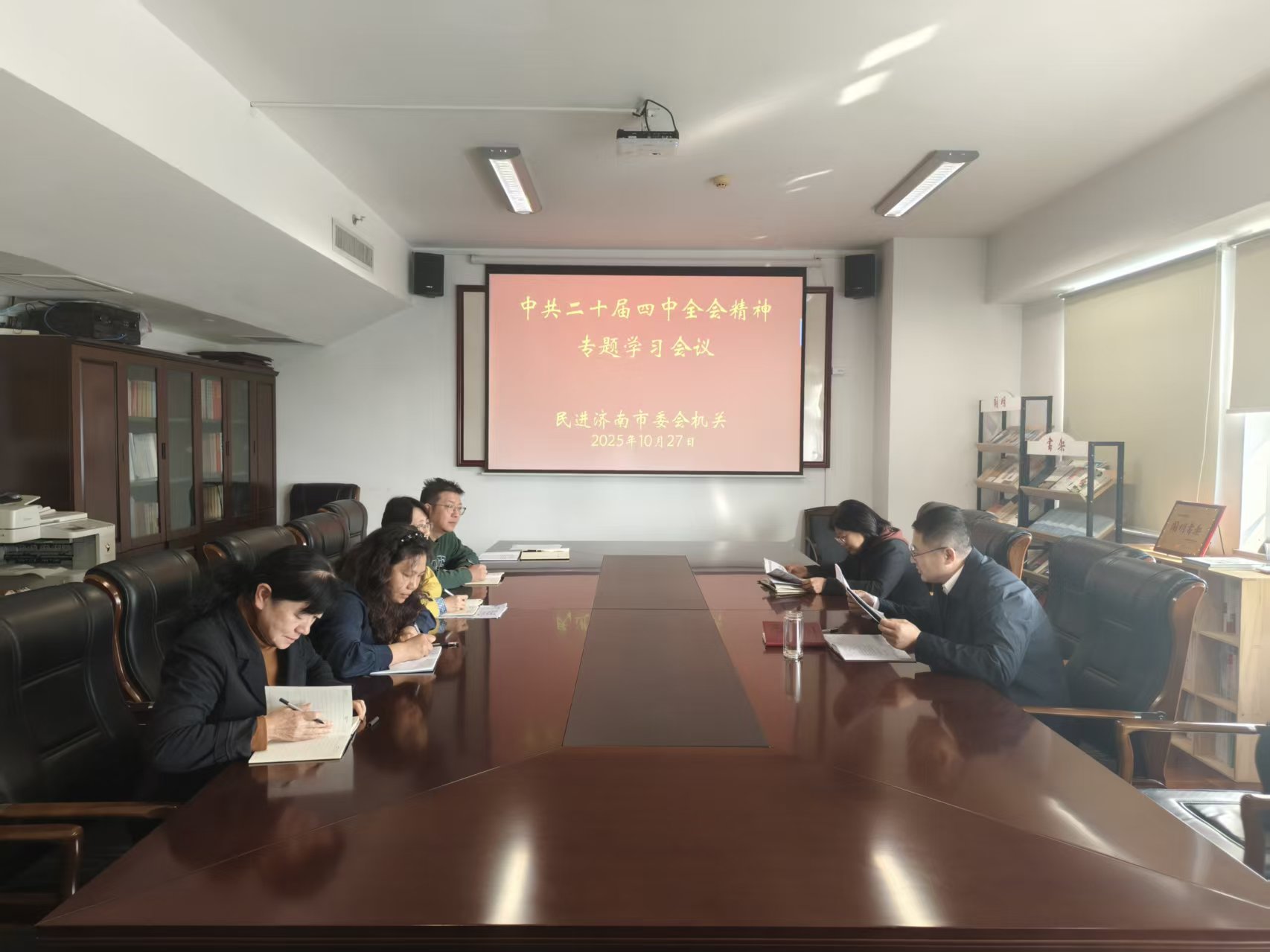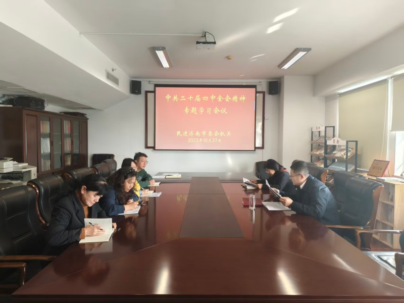 10月27日,民进济南市委会机关召开会议,专题学习中共二十届四中全会精神。民进济南市委会专职副主委叶霖、秘书长乔军出席会议。