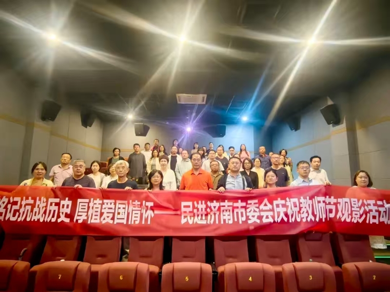 为纪念中国人民抗日战争暨世界反法西斯战争胜利80周年,弘扬伟大抗战精神,激励广大会员铭记历史、砥砺前行,9月5日晚,在第41个教师节即将来临之际,民进济南市委会集体观看了重大革命历史题材电影《南京照相馆》,在光影中接受了一次深刻的精神洗礼。市委会专职副主委叶霖,秘书长乔军,各基层组织会员代表及市委会机关干部参加。