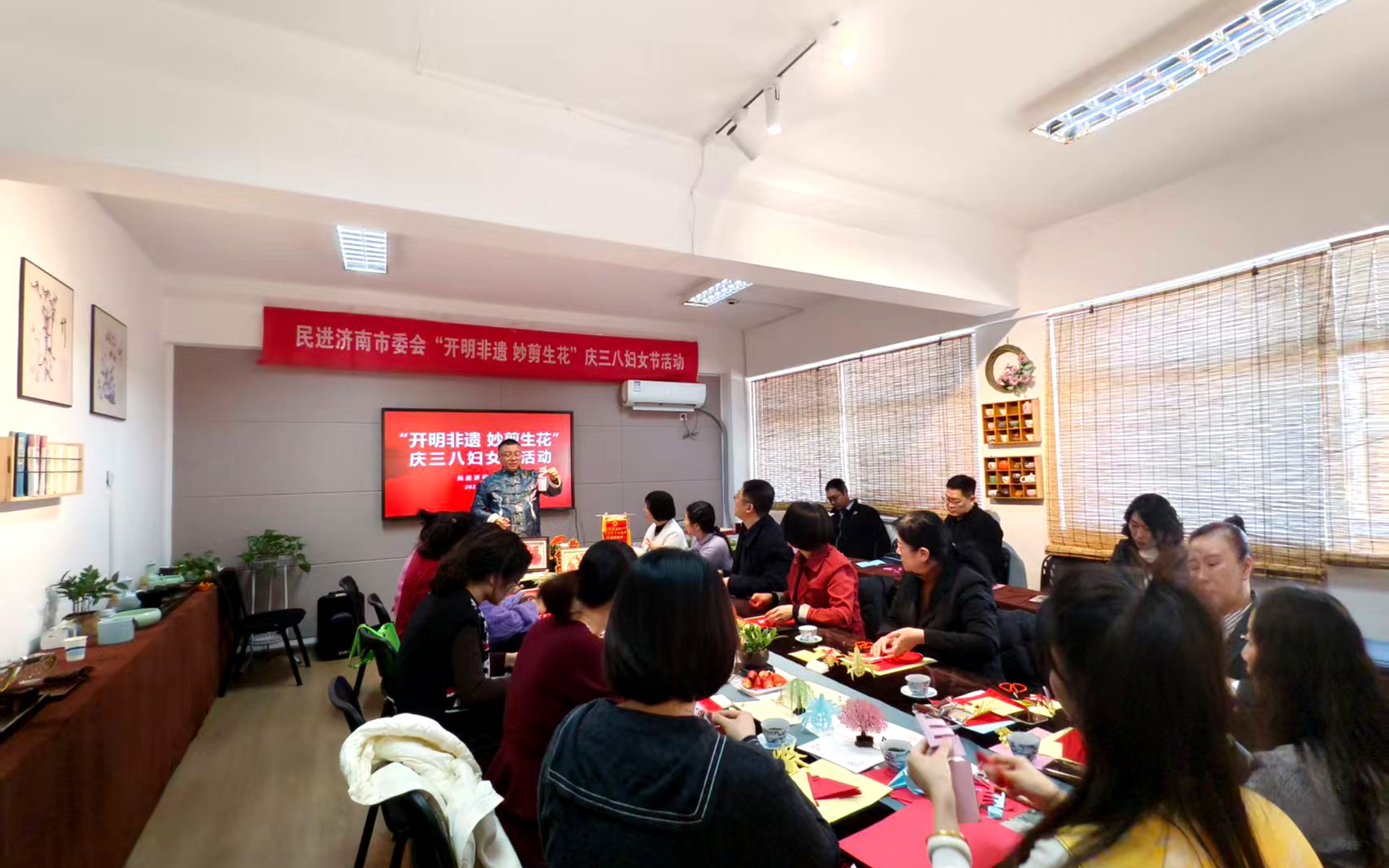 为庆祝“三八”国际妇女节‌‌,丰富女会员精神文化生活,3月6日,民进济南市委会举办“开明非遗  妙剪生花”主题剪纸活动。民进济南市委会秘书长乔军,民进济南市妇女儿童委员会主任杨文华,民进市中区基层委员会主委韩辉,部分妇女儿童委员会委员、市中区基层委员会女会员参加活动。