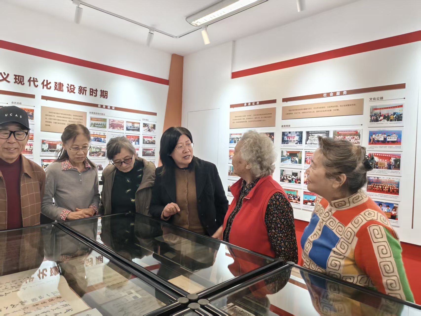 活动伊始,老会员们走进济南民进会史馆,在泛黄的文献资料、珍贵的历史照片中回顾中国民主促进会与中国共产党风雨同舟、同向同行的光辉历程和济南民进的历史沿革、发展历程及履职成果,老会员们不时驻足观看,仔细端详每一份会史资料,当看到自己当年参与活动的影像资料时,更是难掩激动之情,纷纷讲述起那段与组织共成长的峥嵘岁月。
