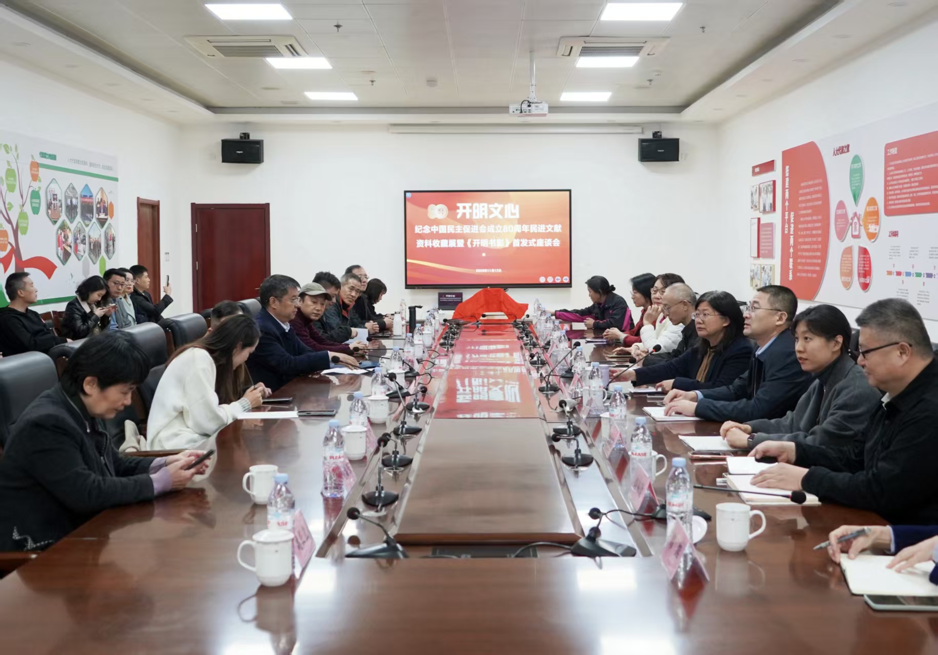 座谈会前,与会人员集体参观了纪念中国民主促进会成立80周年民进文献资料收藏展。