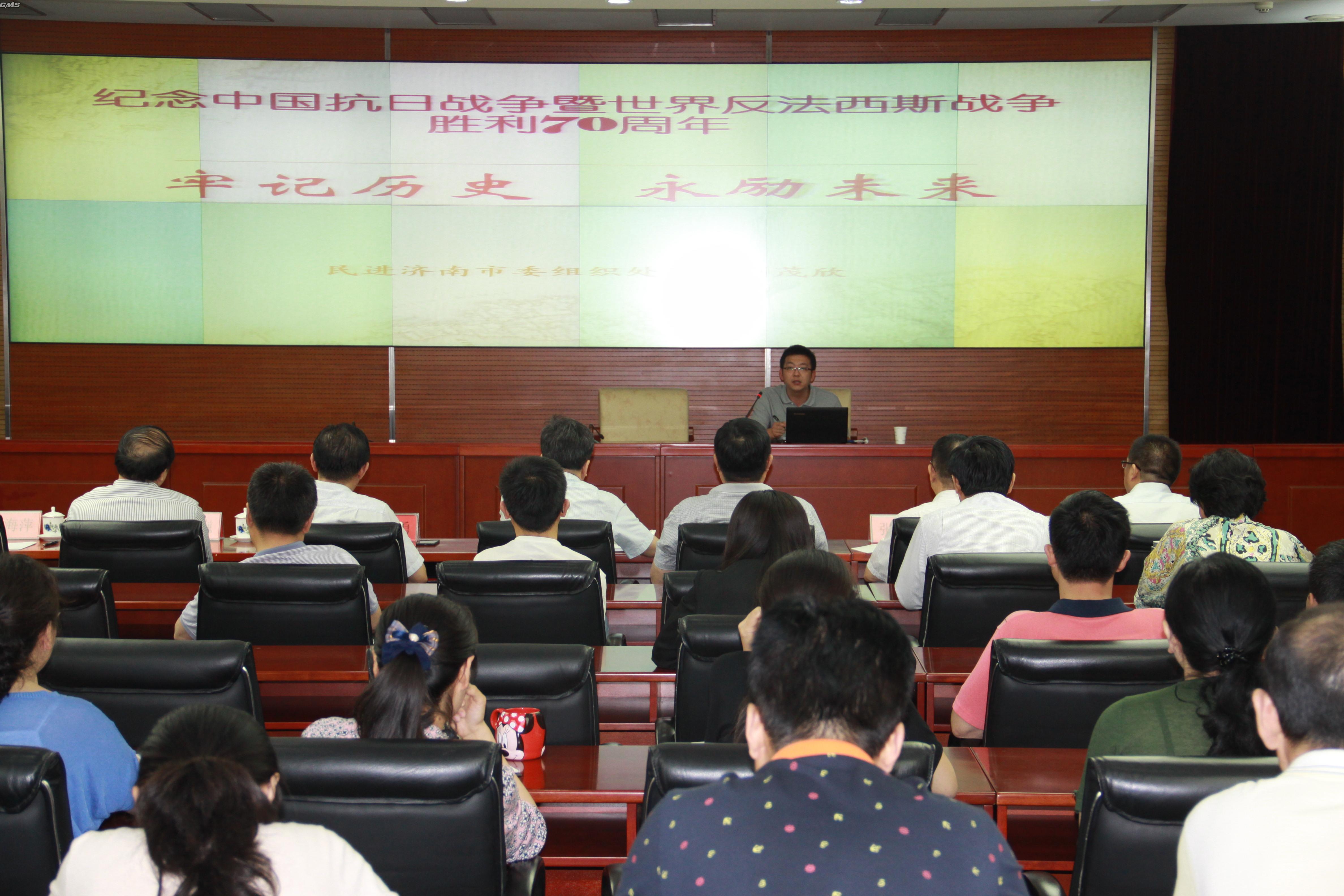 民进市委组织处刘茂欣同志围绕纪念抗日战争胜利70周年这一主题,从中日双方军力对比,中国共产党在抗日战争中发挥的中流砥柱作用,民主党派在抗战中发挥的积极作用,大力弘扬抗战精神四个方面作了“牢记历史,永励未来”主题宣讲。民建济南市委组织处庄严同志从四个方面阐述了“传承中华文化,铸造中国精神”的重要意义。