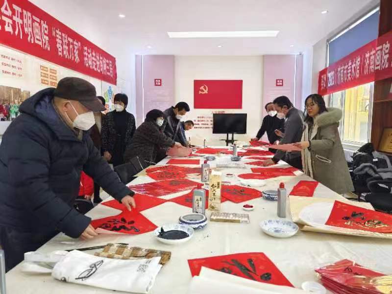 1月17日上午,民进历下区总支在甸柳街道办事处甸柳三社区开展癸卯(2023年)民进全国“春联万家•奔赴新征程”活动。民进济南市委会副主委、济南美术馆(济南画院)副馆长徐琳、历下区委统战部副部长高振华、民进历下区总支主委汪颖春,民进济南开明画院、济南美术馆书画家、民进历下区总支会员参加活动。甸柳街道党工委书记周海霞、主任胡军、副书记牟然,甸柳第三社区书记杨天煜应邀参加。