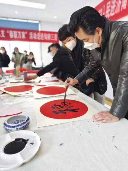 此次活动,民进历下区总支、民进济南开明画院共为甸柳第三社区居民送出了春联150余副,福字150余张。每一副春联各显神韵,反映了中华民族传统文化底蕴的博大精深,体现着中国人民对国泰民安、阖家团圆、平安幸福美好意愿的热切期盼。在营造欢乐喜庆节日氛围的同时,丰富了居民群众的精神文化生活,弘扬了传统书法文化,受到广大社区居民的热烈欢迎。