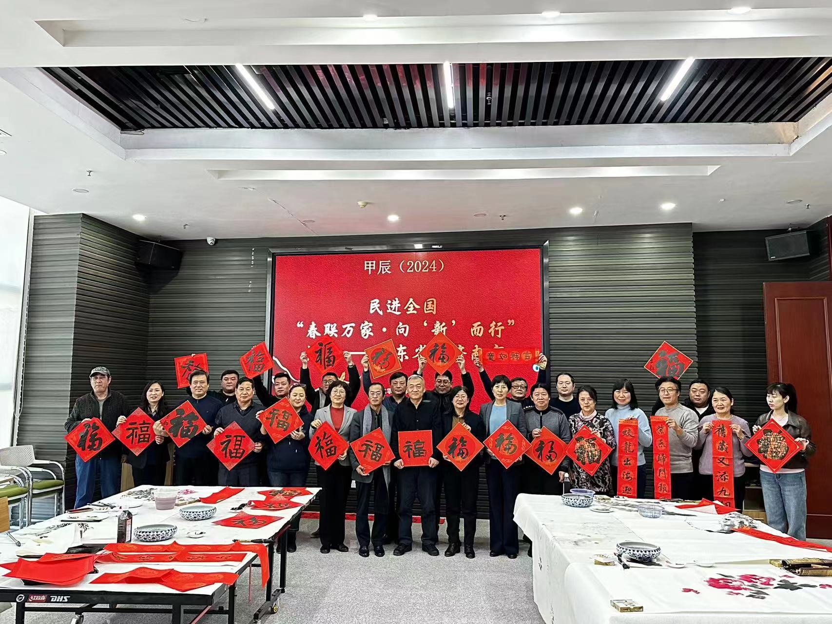 龙腾盛世春将至,翰墨送福进万家。1月22日,民进山东省委会、济南市委会在天桥区北园街道凤凰山社区联合启动甲辰(2024)“春联万家·向‘新’而行”活动。民进山东省委会二级巡视员、办公室主任梁兴诗,济南市委会副主委叶霖、王洪新、秘书长刘海萍,中共天桥区委统战部副部长、区社会主义学院副院长李培云等出席活动。
